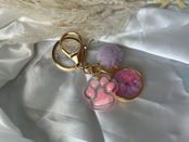 レジン肉球チャーム押し花キーホルダー《ピンクラメ》