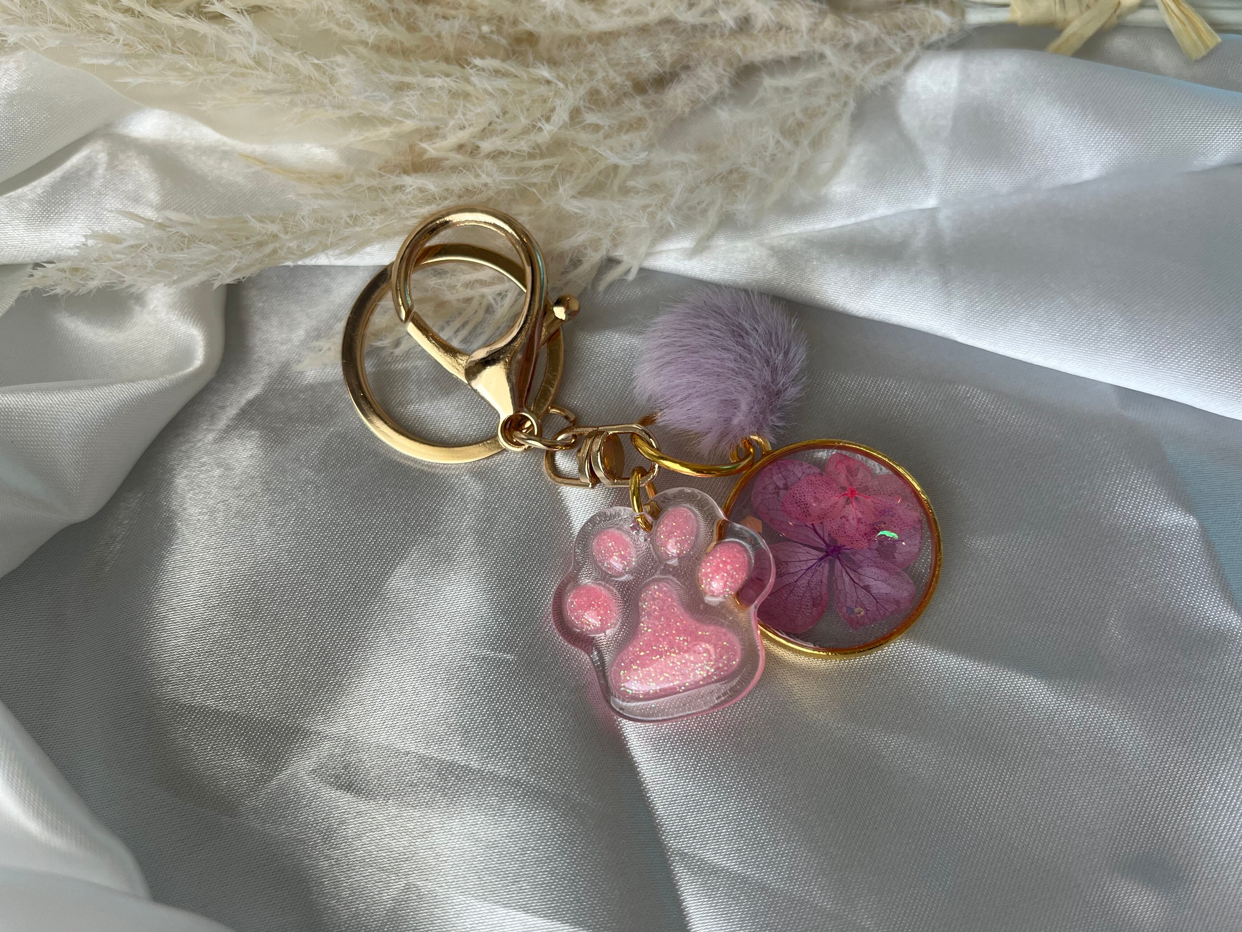 肉球デザインと花柄の可愛いキーホルダー。