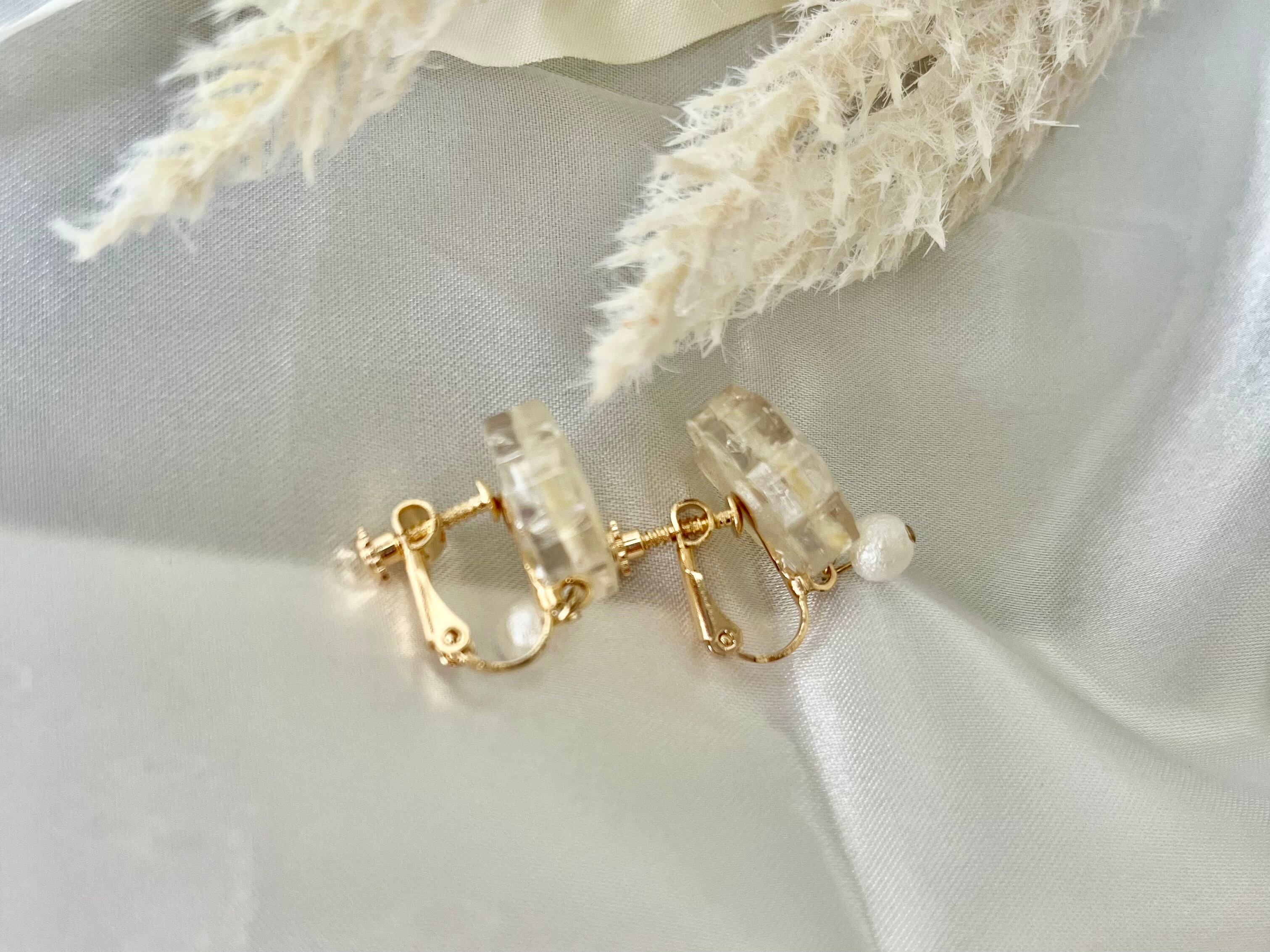 中にシェルフレークを散りばめ、真ん中にパールが入ってます。
