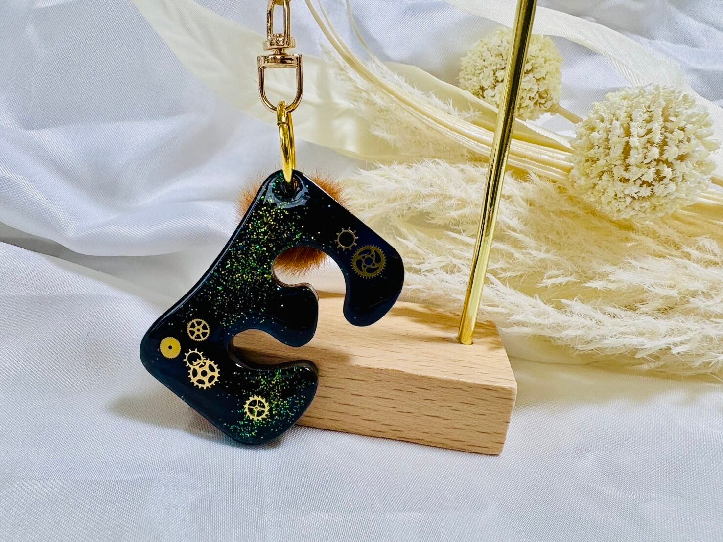 歯車デザインのアルファベットEキーホルダー